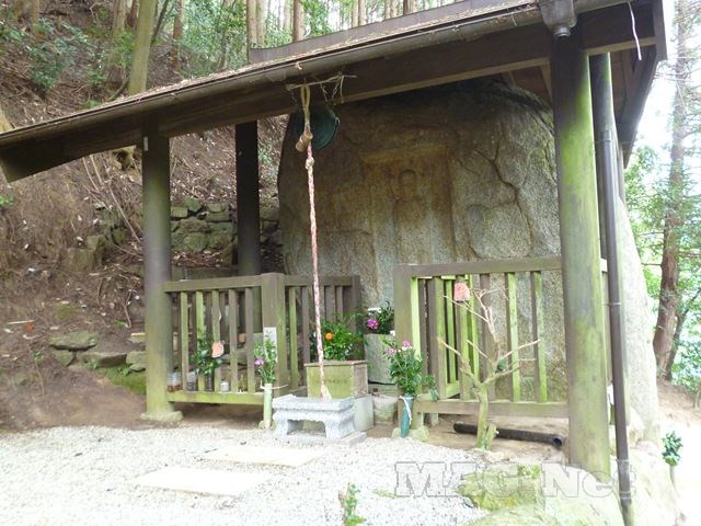 花崗岩の巨石に疱瘡除けを祈願して彫られた地蔵菩薩立像があります。