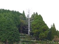柳生宗矩の子 柳生三厳が諸国漫遊に旅立つ時に植えたとされる杉で、いまは枯れていますが周りの緑に倒れずに残っておる枯れ木がひときわ目立っています。
