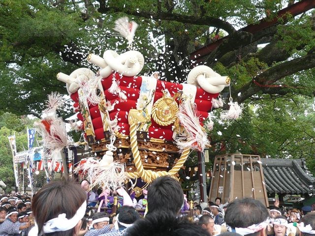 この地方には多くのだんじり祭りがありますが数から言ってもその最大級で、だんじりを見るための待つ余裕さえ与えてくれませんでした。