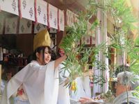 吉兆と呼ばれる小宝を買い、手に持った笹につけてもらいます。