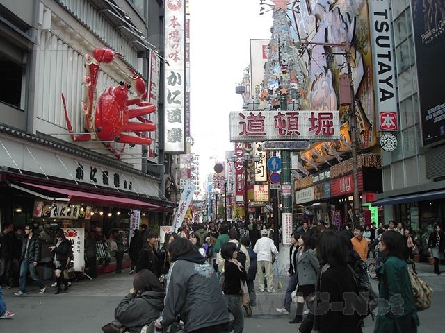 そして太鼓を叩く人形で有名な「くいだおれ」や、立体のふぐの看板が頭の上に飾られている「づぼらや」、そして竜の看板で脂っこいが旨いラーメン屋「天龍」。