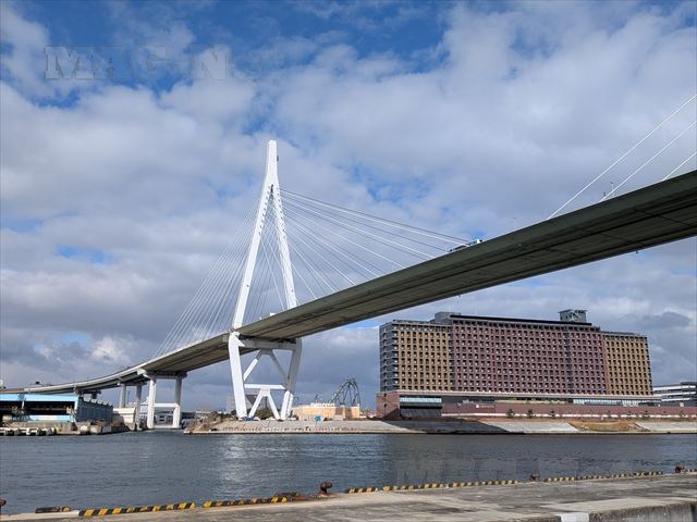 ここからは阪神高速湾岸線に架かる美しい姿をした鉄橋を見ることができます。
