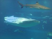 大水槽で泳ぐジンベエザメをはじめ、南極のオウサマペンギン、日本海溝のタカアシガニなど多くの動物や魚が展示されています。