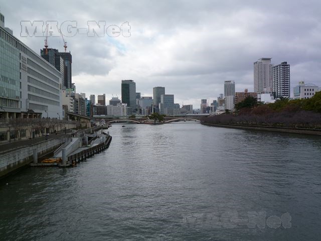真ん中の陸地がここから西に広がる中之島で、堂島川と土佐堀川の間に挟まれた空間です。
