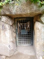 境内には、真田幸村の像が建っており、その裏手には石を積まれた怪しげな入り口が、真田山の斜面にぽっかり口を開いています。