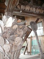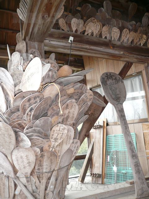 都久夫須麻神社本殿の前には、拝殿があり多くのしゃもじが奉納されています。
