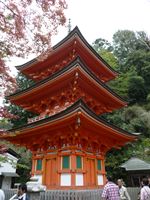 本堂のそばには朱色をした三重の塔があります。