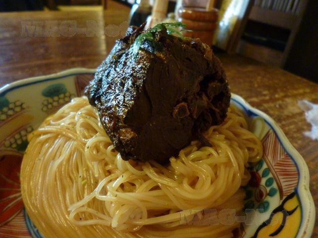 そうめんには、焼き鯖を甘辛く煮たときの煮汁がしっかりと浸みていて、そうめんだけでも美味しい一品です。