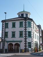 木造3階建で白壁、八角塔屋を持つモダンな建物は、1874年に建てられた学校跡です。