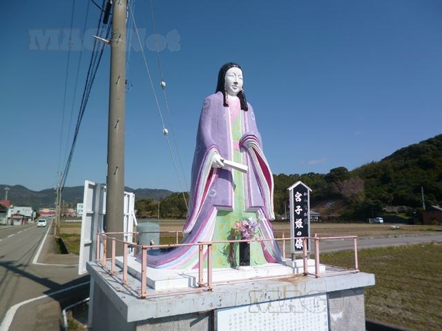 JR御坊駅から10分ほど離れた田んぼの真ん中に、宮子姫の像がポツンと建っています。