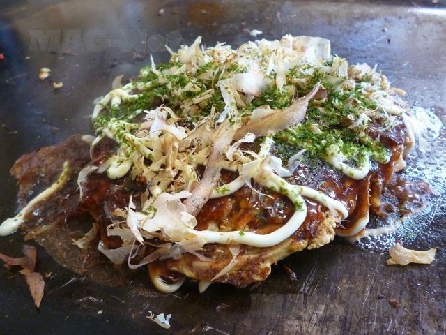 ソースをかけ、カツオと青海苔をまぶすので、味はお好み焼き(そばが入っているのでモダン焼き)そのものです。