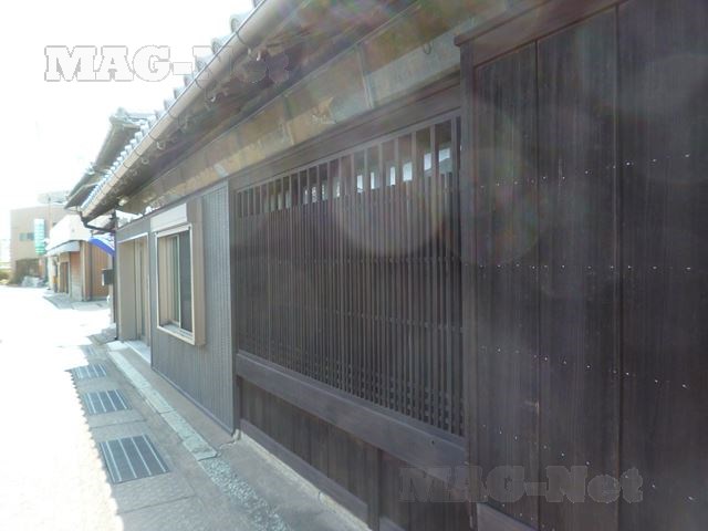 その北側には、赤色の窓格子がきれいな江戸時代からの建物があります。