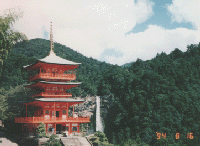 熊野那智大社から那智の滝をバックに、少し下に見える五重塔を見る眺めは、旅行雑誌の写真そのもので、なかなか絵になっていました。