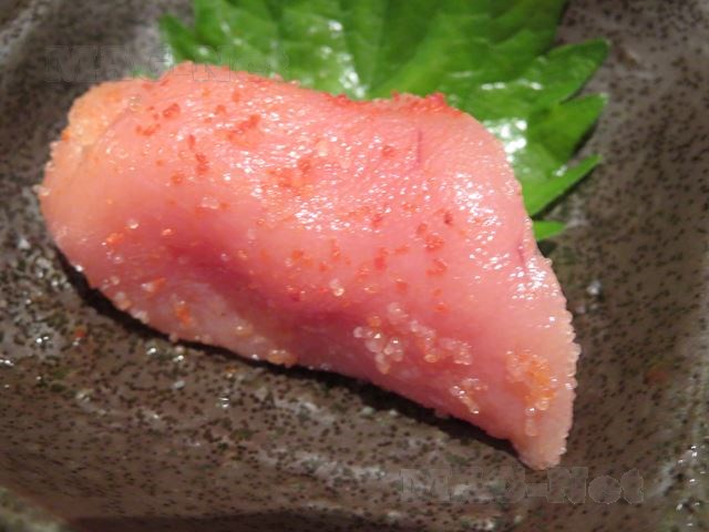 「辛子明太子」は博多が誇る食べ物で、ピリッと効いた辛味がお酒に、そして熱い白ご飯にも合います。