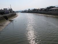 ここで再び駅の方に向きを変え、町の南側にある「長峡川(ながおがわ)」を越えます。