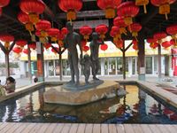 駅のロータリーの片隅にあり、観光で訪れたと思われる外国人が物珍しそうに眺めています。