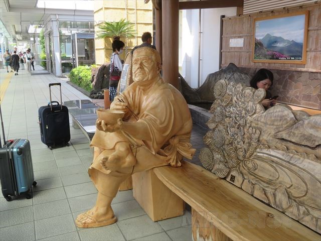ホテル内の大浴場へと続く通路には、新婚旅行でこの地を訪れた坂本龍馬の展示があります。