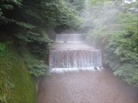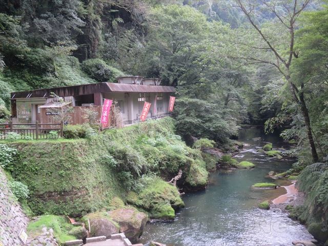湯気が目の前のところまで来ると、この辺りが霧島温泉です。