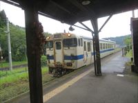 駅舎を眺めていると、ちょうどそこに列車がやってきました。
