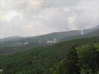 温泉に近づいて来ると、山の斜面のあちらこちらから湯気が上がっているのが見えます。