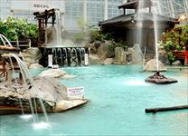 水深1.4mの池のような湯舟を歩いて、数々の湯舟を巡ります。