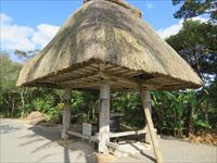その奥の藁葺きの住居が、島妻 愛可那と吉之介が住んでいたところです。