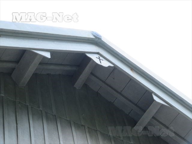 また東側の屋根の所にも十字に切り欠いた板がはめられ、陽の光を受けて壁に十字架が映るようになっています。