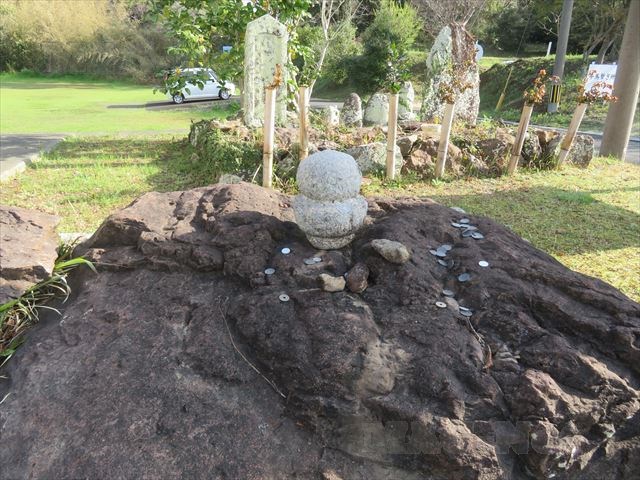 國片主神社の横にある「へそ石」は、壱岐の中心を表す石として人々の道標となってきました。