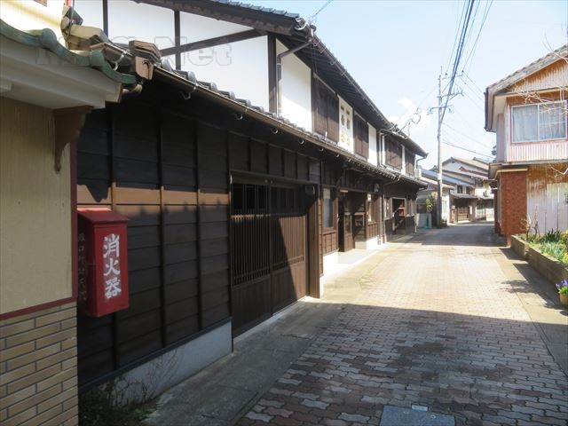 木造で漆喰を塗った壁の建物が並びます。