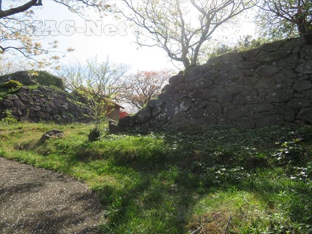 その先には、城の石垣が見えてきます。