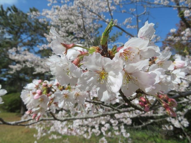 当時の建物は影も形もなくなっていますが、代わりに城内には満開の桜があります。