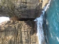 岩を侵食するほどの荒々しい波と穏やかそうな青い海が対照的です。