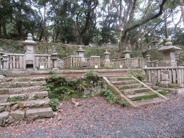 この石段を上った場所に宗家一族の墓所である御霊屋(おたまや)があり、歴代の宗家の墓が並んでいます。