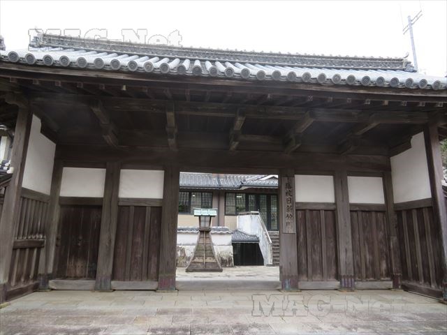 屋根には瓦、壁は漆喰を塗られた立派な門です。