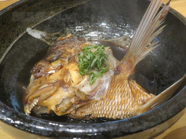 そしてやってきたのは、期待通りの醤油と砂糖で飴色に煮詰まったタイのお頭です。
