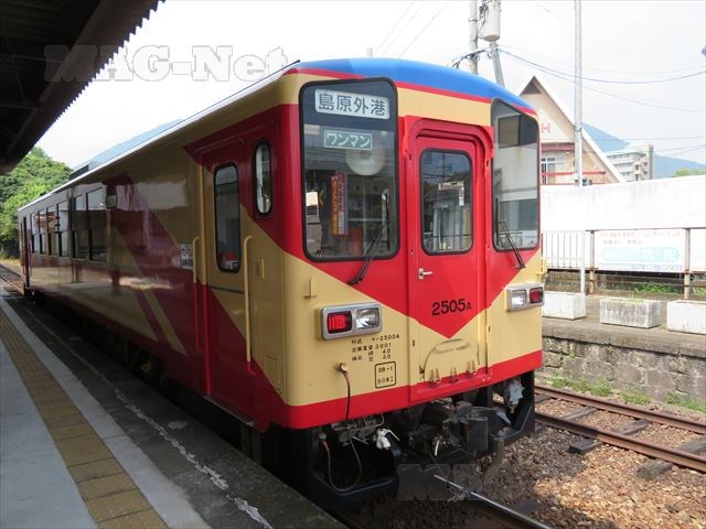 黄色い車体の島原鉄道ですが、このときやってきたのは赤とベージュの急行列車、これも島原鉄道の独自色です。