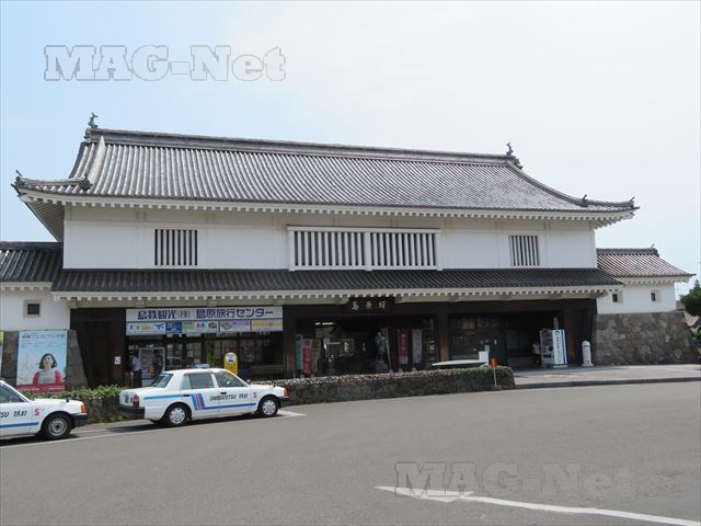 島原城の大手門をモチーフにした駅舎です。