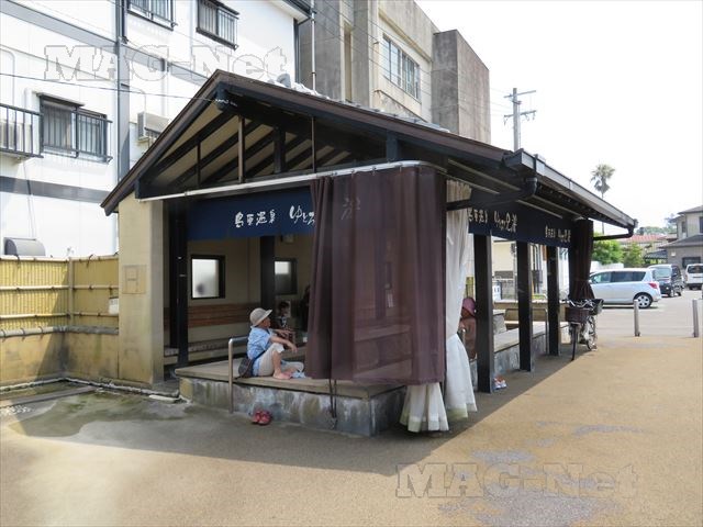 しばらく行くと、足湯を見つけました。