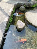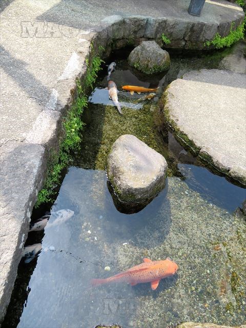 先ほどの足湯でゆっくりできなかった分、鯉を見ながら心を癒されることにします。