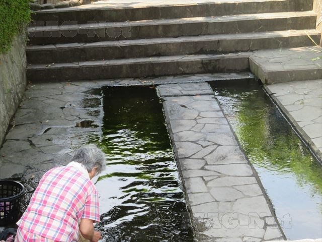横の洗い場では、住民が湧き水を利用して洗濯をする風景を目にすることができます。