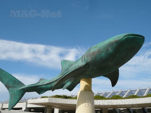 訪れた時はサメの餌付けの時間で、身体に似合わず小魚やプランクトンを豪快にひと飲みで食べたのでした。