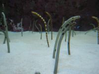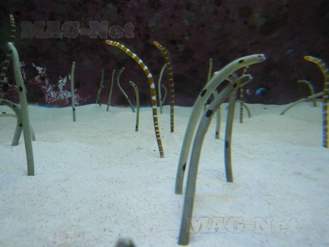水槽の前に黒く映る人影が水槽の底に小さく並び、海の生物に較べると実に無力なものかと思ってしまいます。