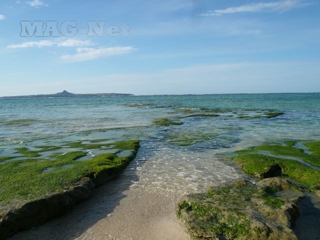 外に出ると、東シナ海の青い海が広がっています。
