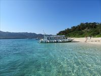 浜にはグラスボートが並び、陸を先頭に船は浜に乗り上げています。