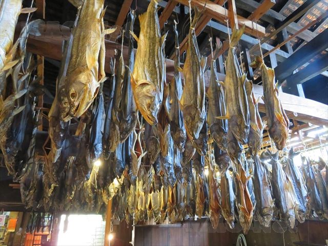 天井からは無数の鮭が吊るされ、ゆっくりと乾燥するのを待っています。