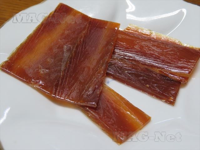 見た目は茶色く薄いものですが、塩が効いていてお酒の肴にぴったりです。