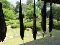 そして杉玉と並んで一般家庭でも見られるのが、軒下に鮭を干している姿です。