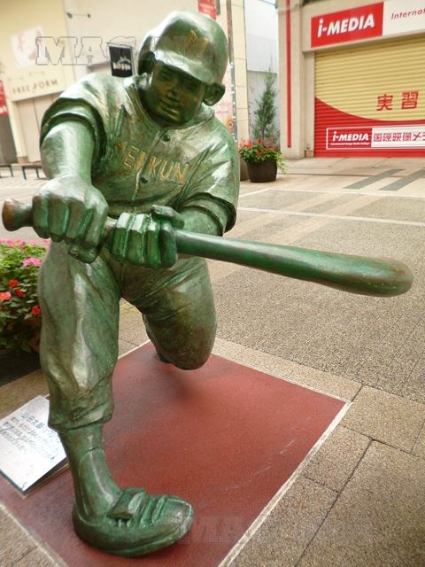 通りの両側に漫画「ドカベン」の主人公山田太郎や岩鬼正美のブロンズ像が並んでいます。