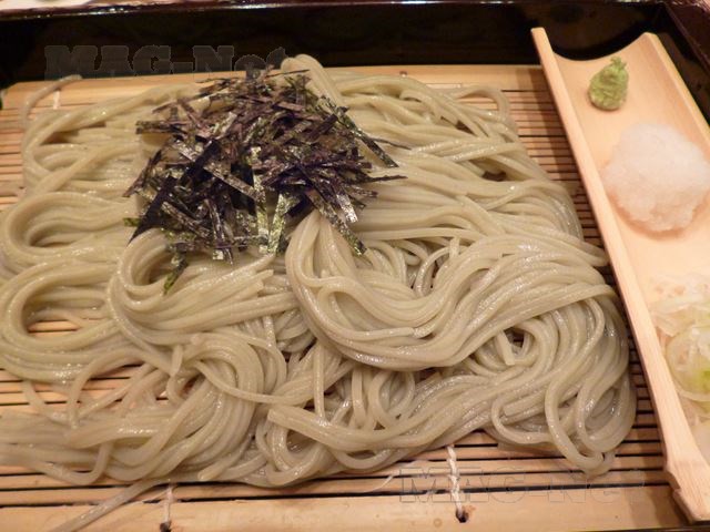 そばは一口程度に小さく丸めて、片木の上に敷き詰められています。