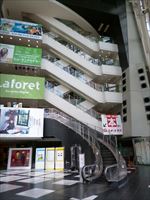 内に入ってみると吹き抜け部分を、螺旋状にエスカレータが登ってます。